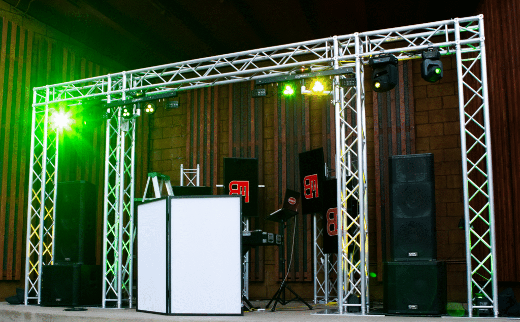 Sound Systems, Truss Set Ups, Mixing Consoles, Wireless Mics